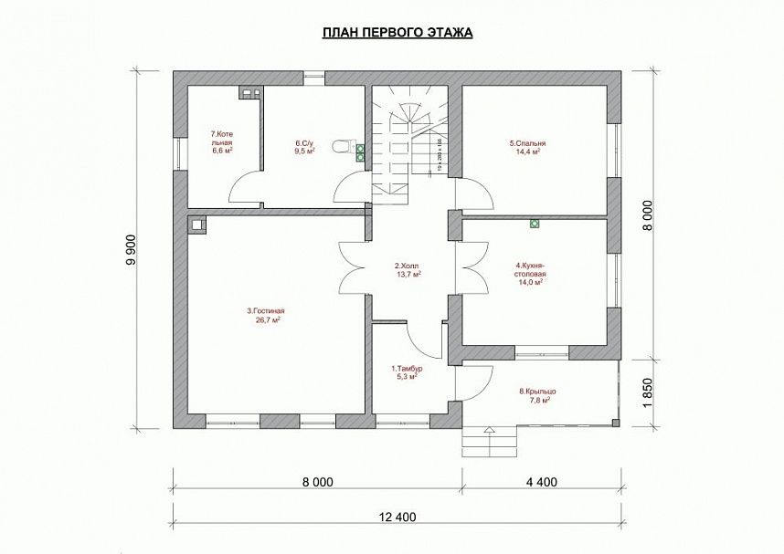 Размер дома 9,9x12,4