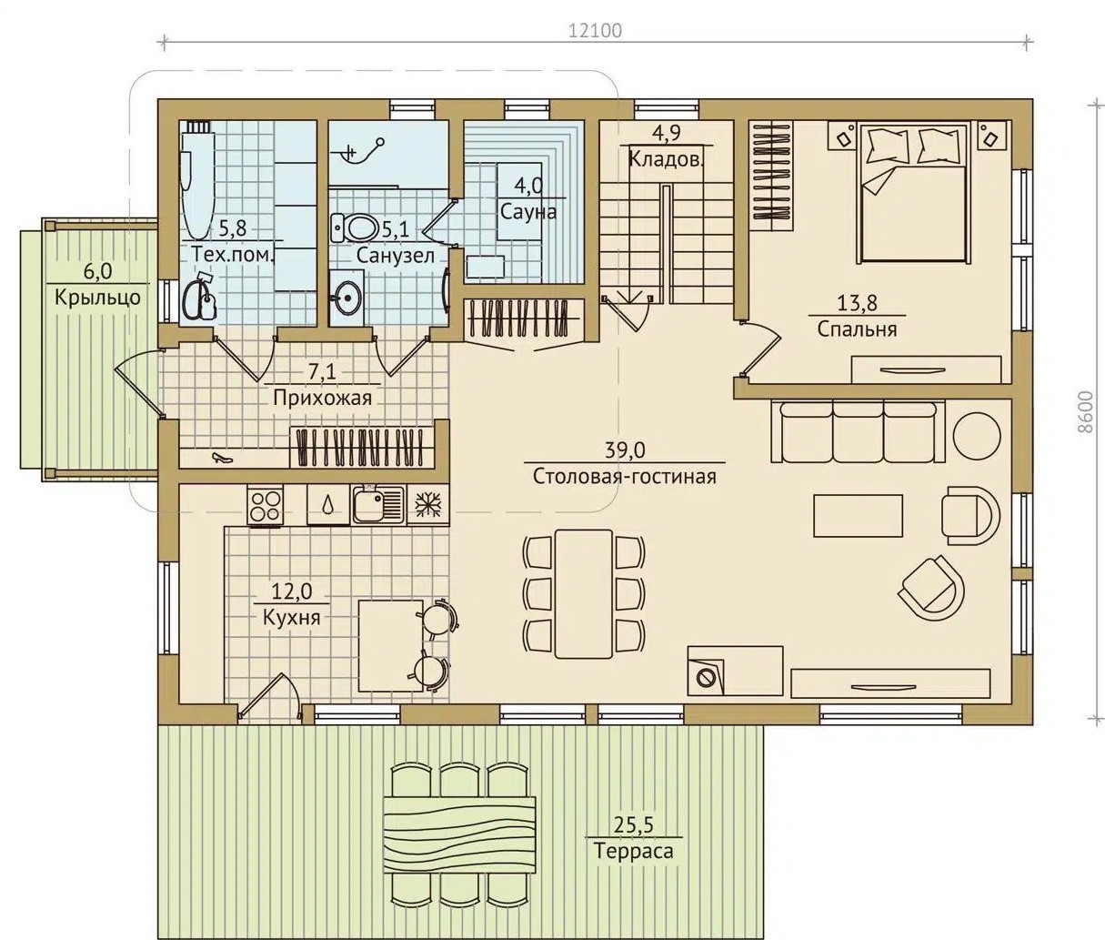 Размер дома 8,6х12,1
