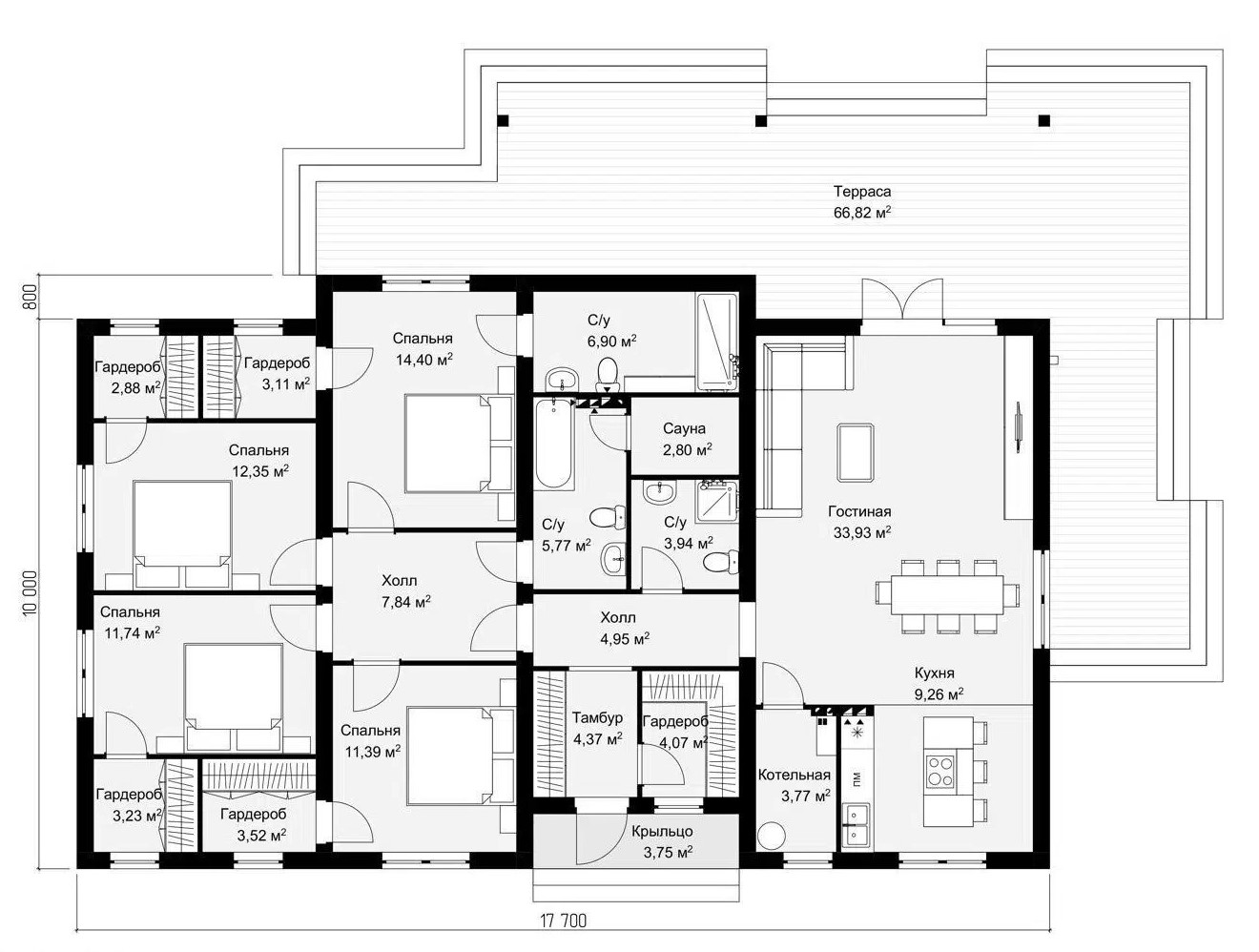 Размер дома 10х17,7