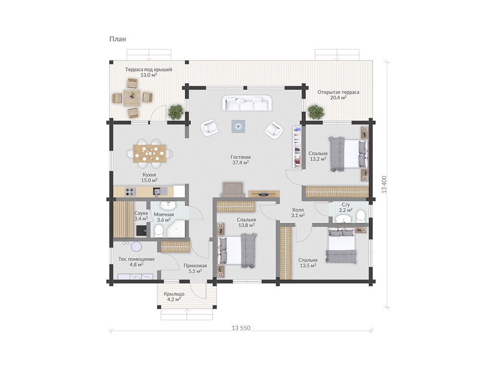 Размер дома 13,4х13,5