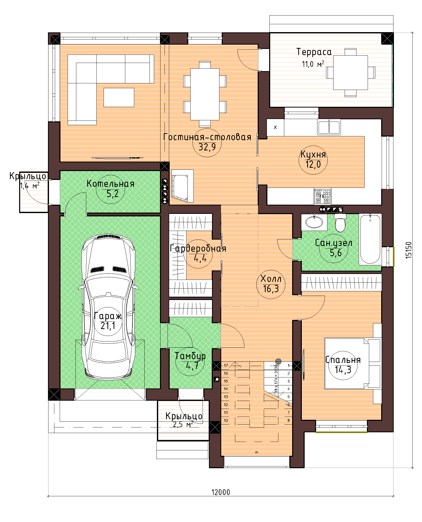 Размер дома 12х15
