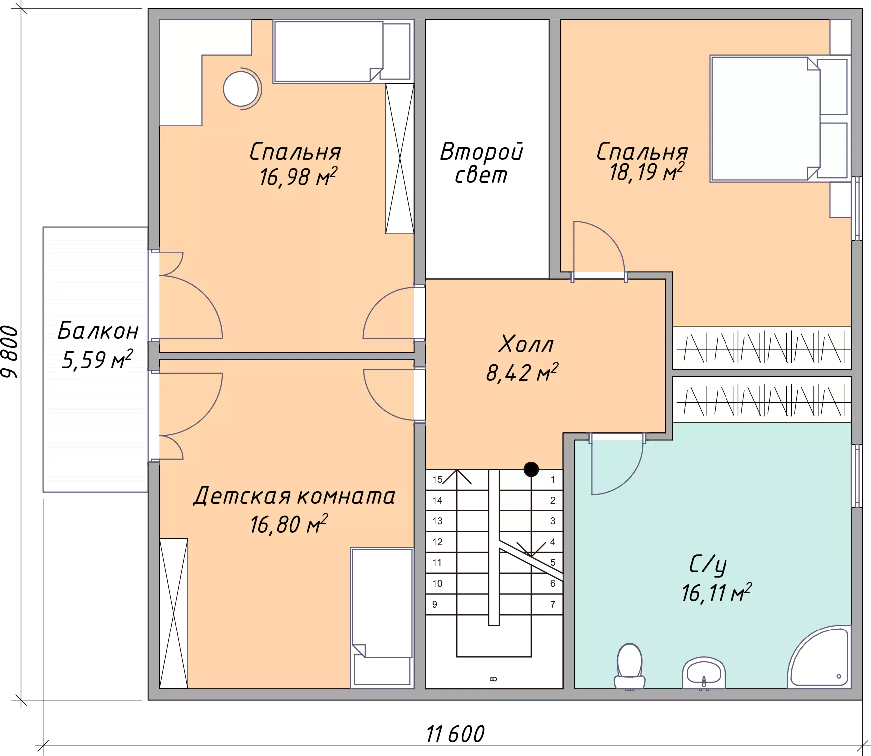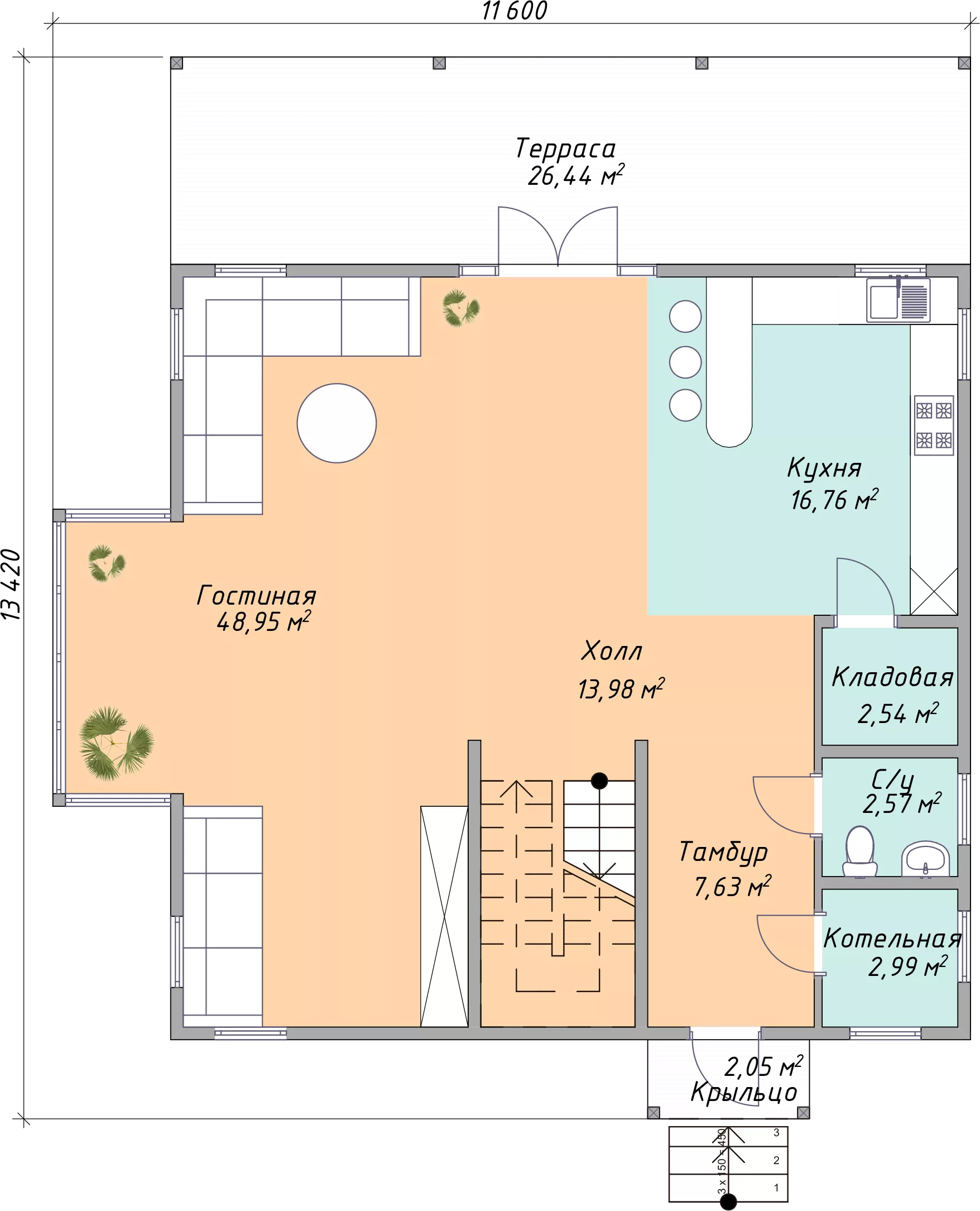 Размер дома 11,6x13,4