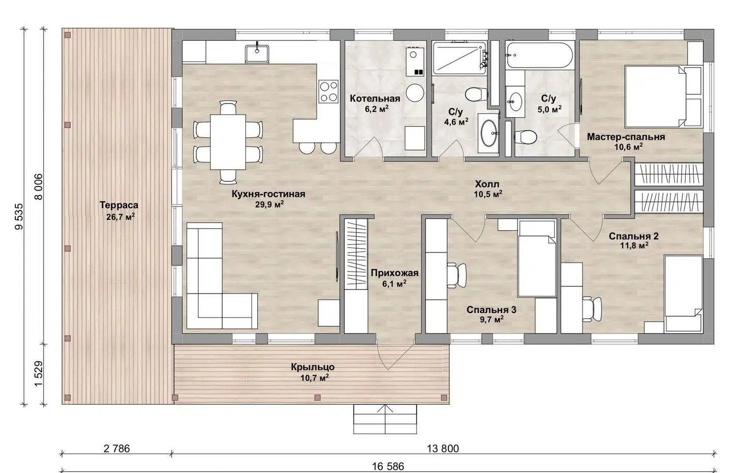 Размер дома 8х16,6