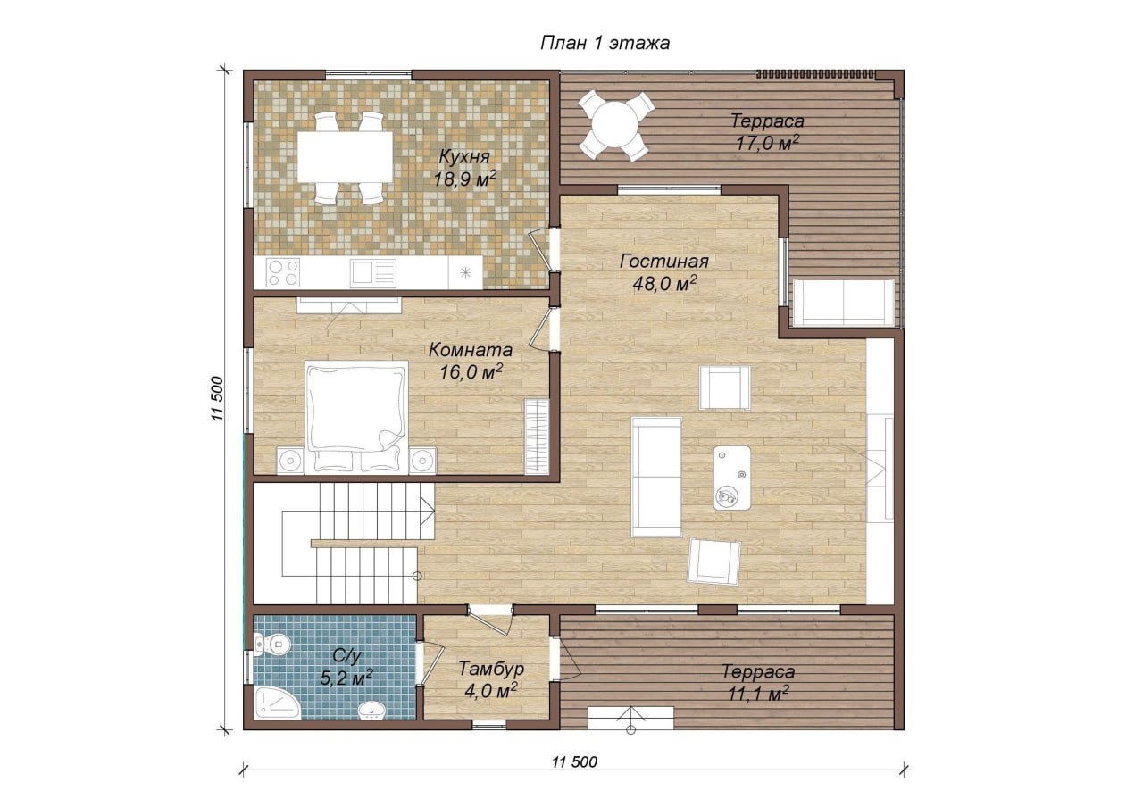 • Покрытие кровли - Гибкая битумная черепица с цветным каменным гранулятом;