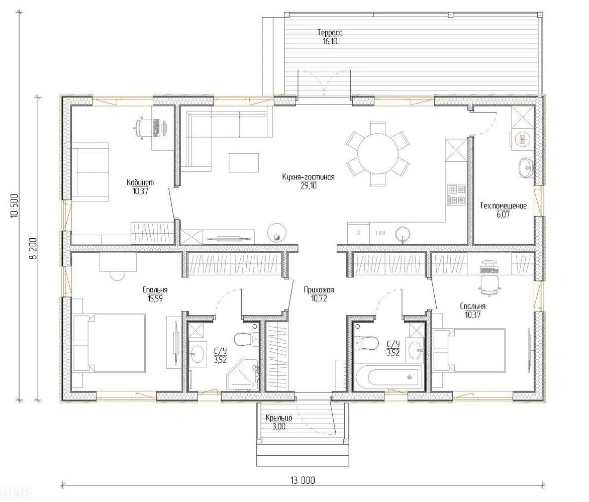 Размер дома 10,5х13