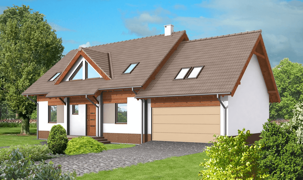 • Покрытие кровли - Гибкая битумная черепица с цветным каменным гранулятом;
