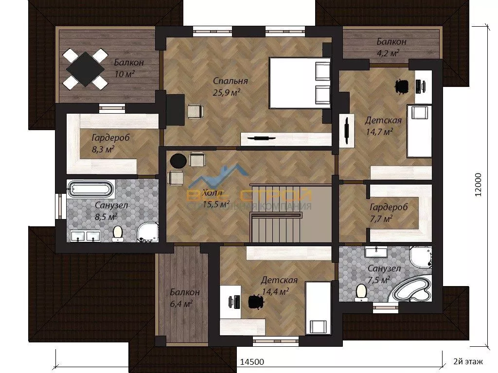 Размер дома 12х14,5