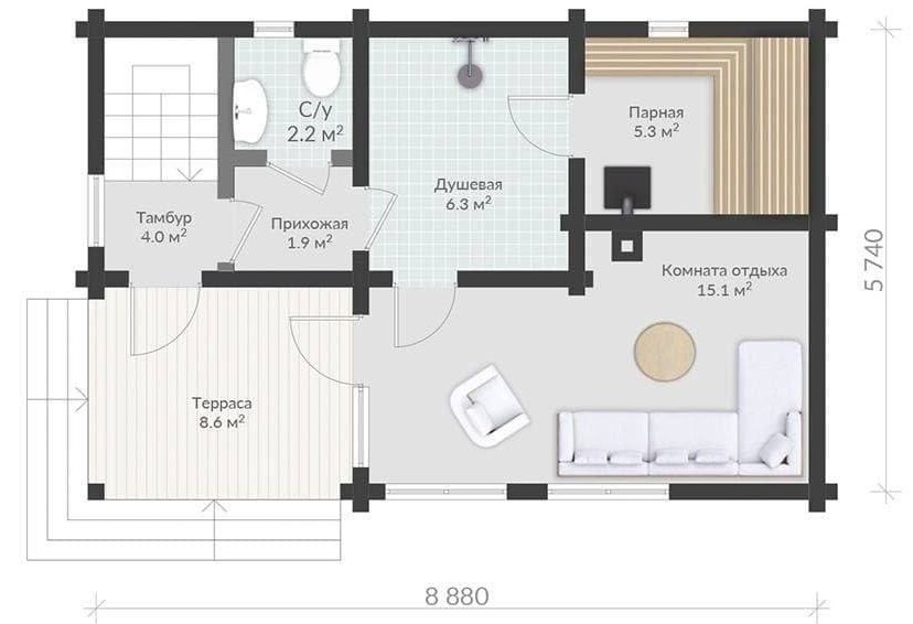 Размер дома 5,7х8,8