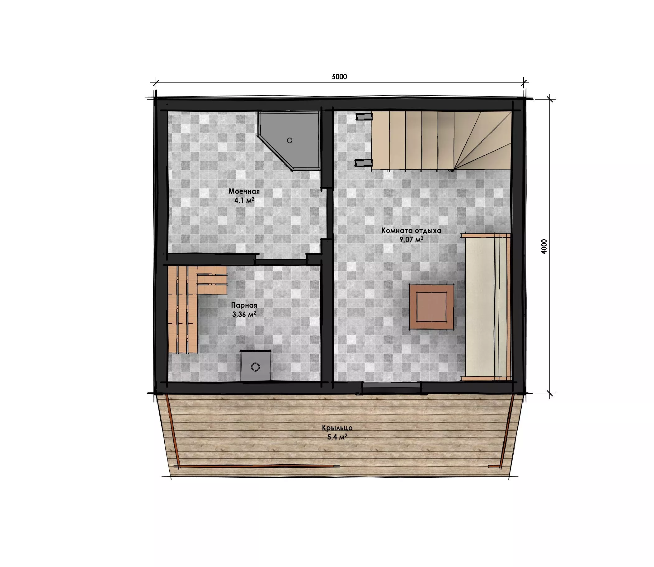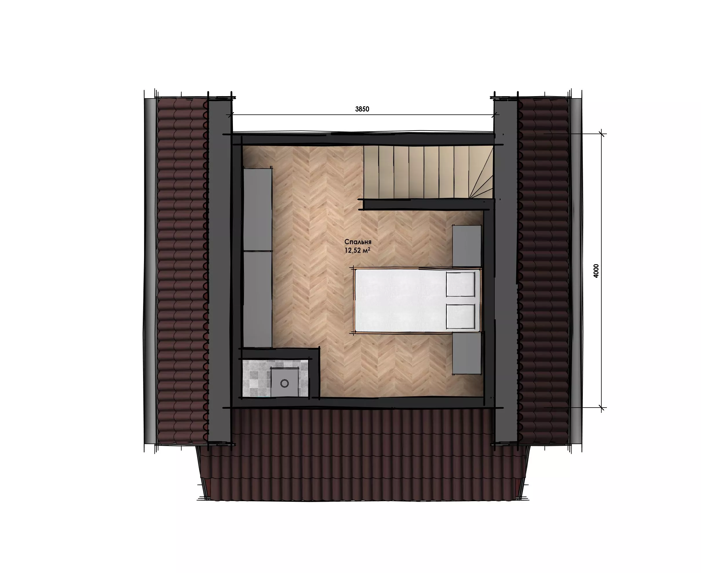 • Покрытие кровли - Гибкая битумная черепица с цветным каменным гранулятом;