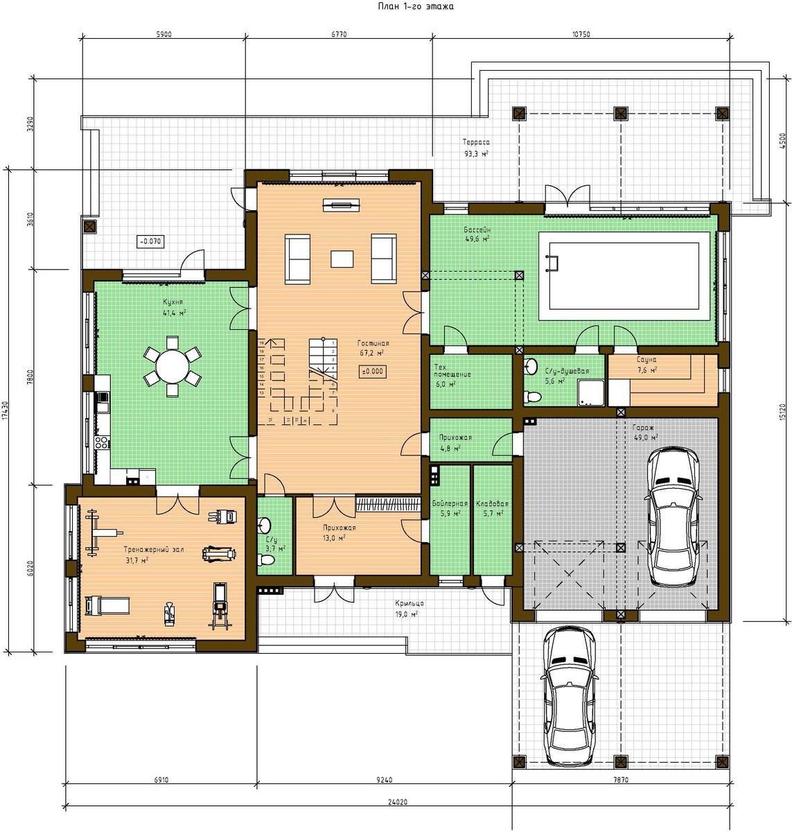 Размер дома 24х17,4