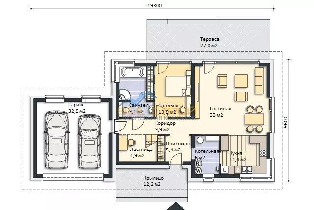 Размер дома 9,6х19,3