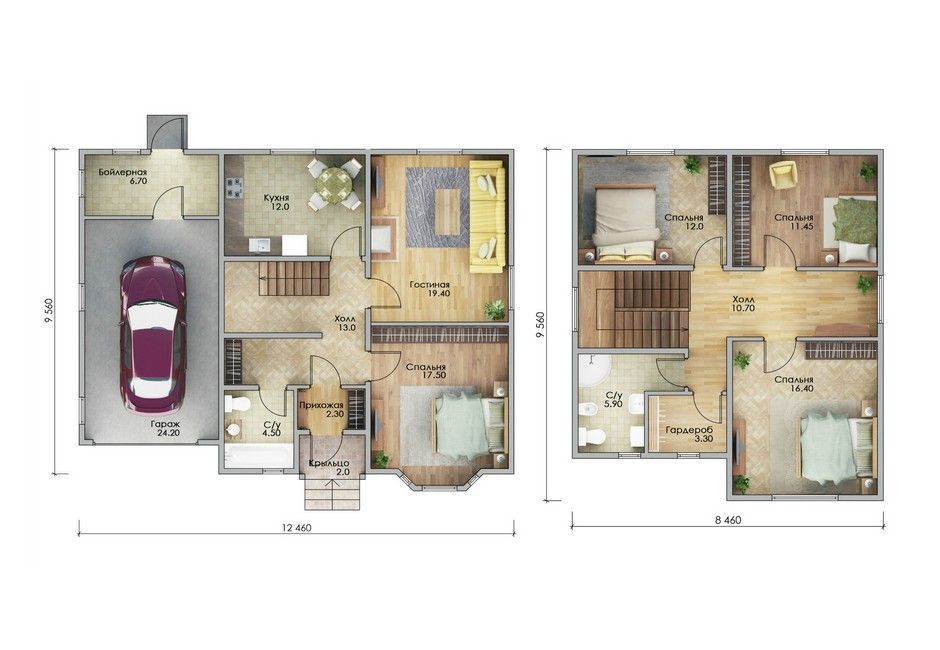 Размер дома 9,5x12,4