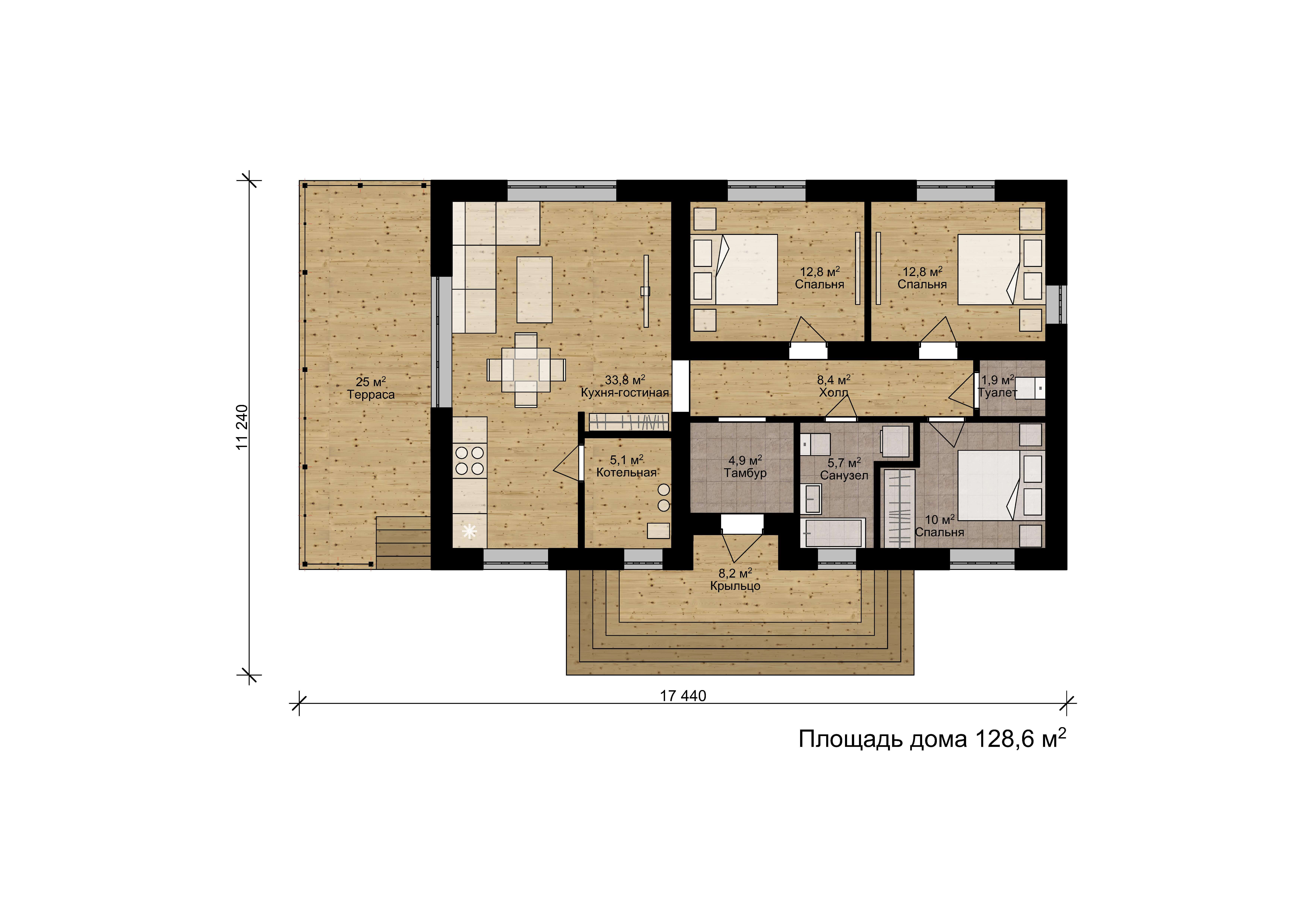 Площадь: 128 м2