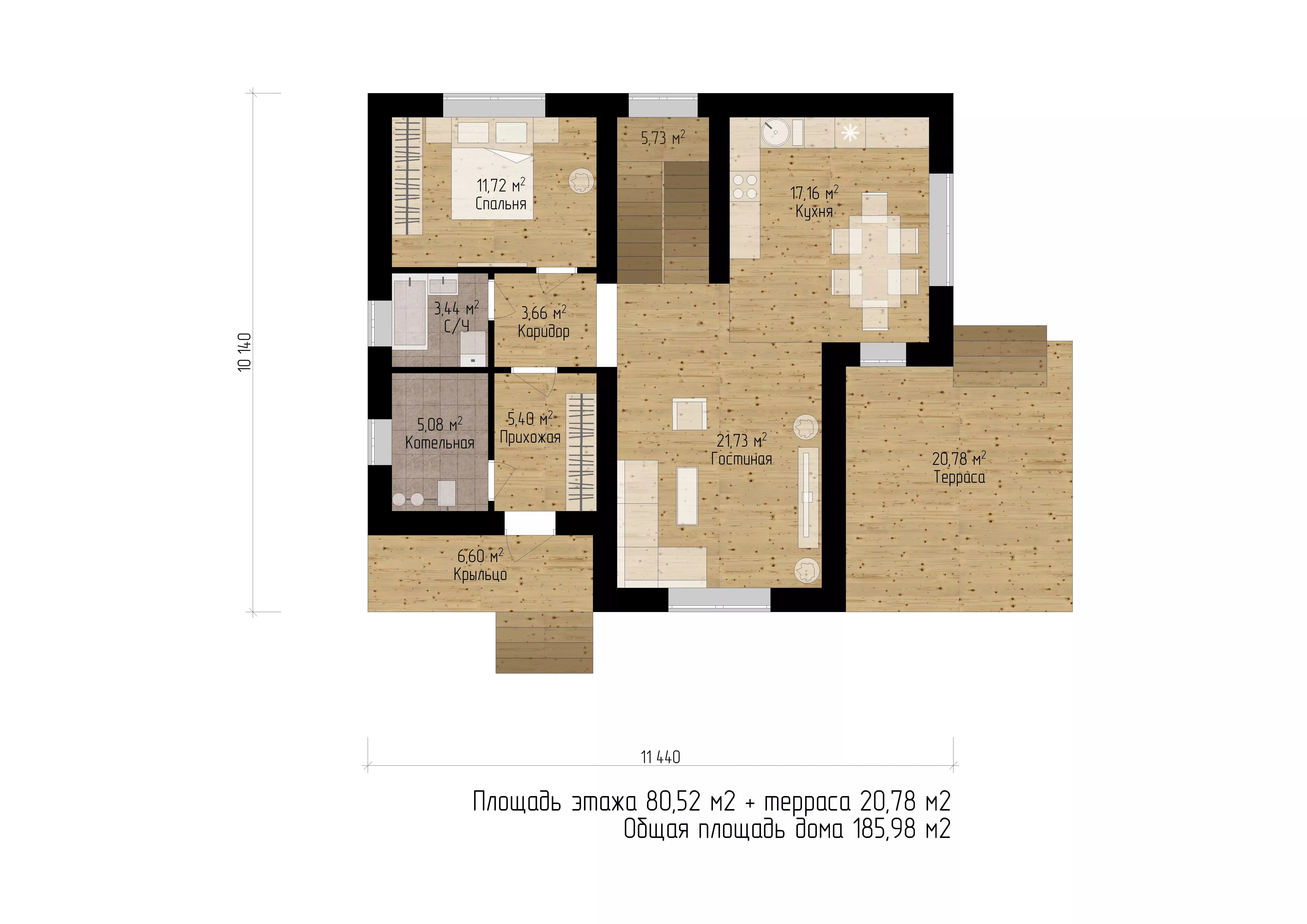 Размер дома 11,4х10,1