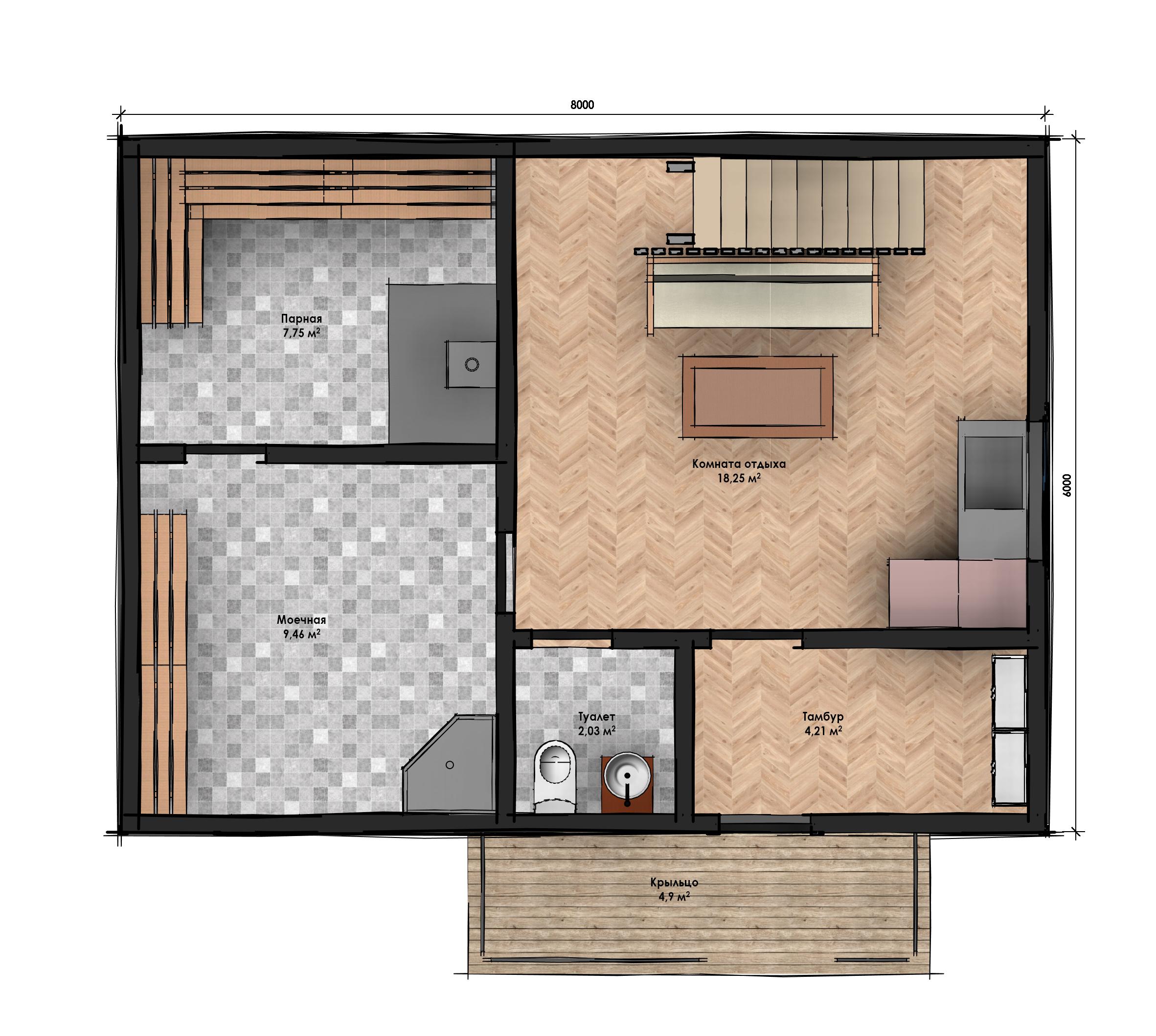 Размер дома 6х8