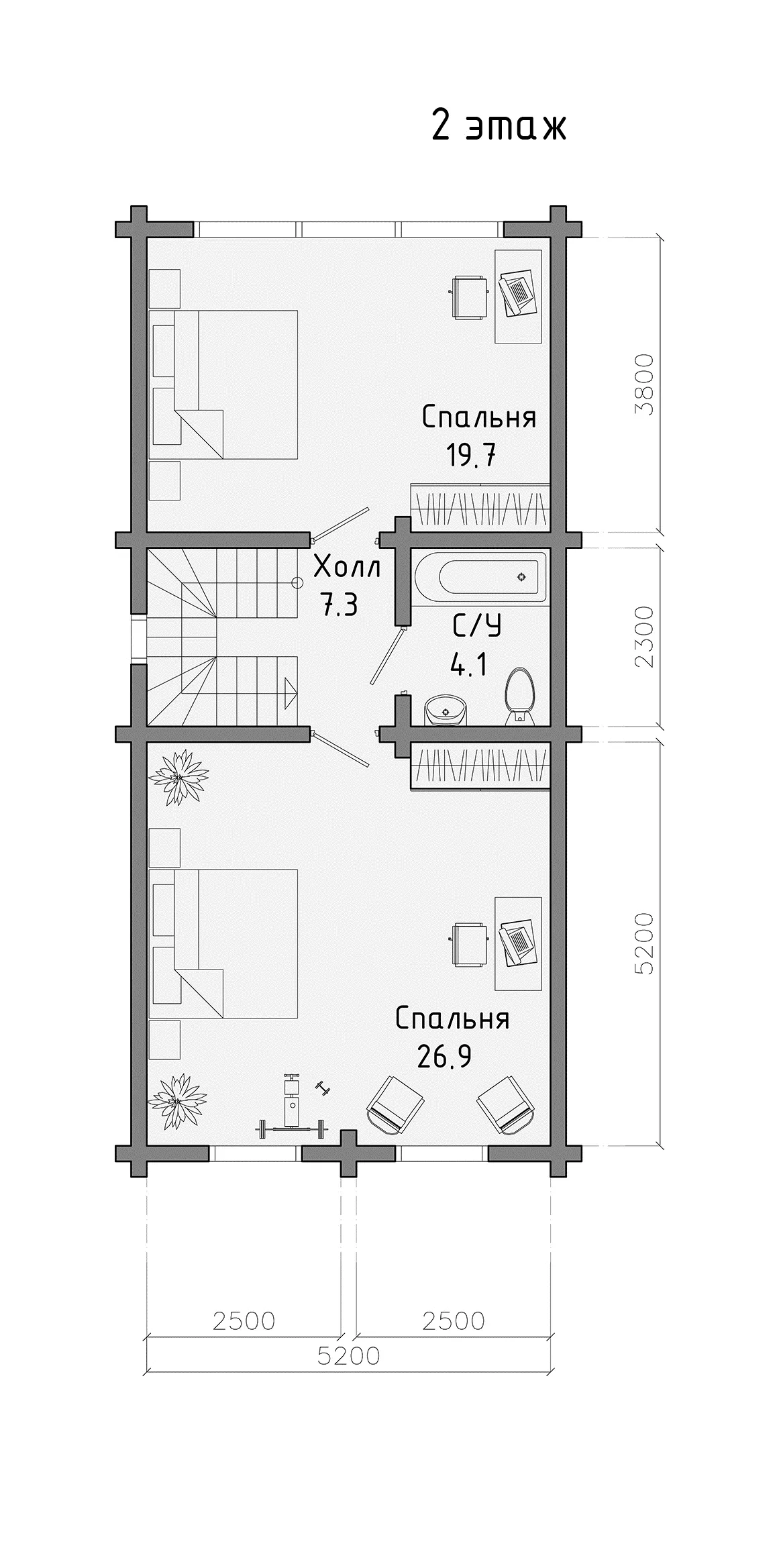 Кол-во спален с 2 спальнями