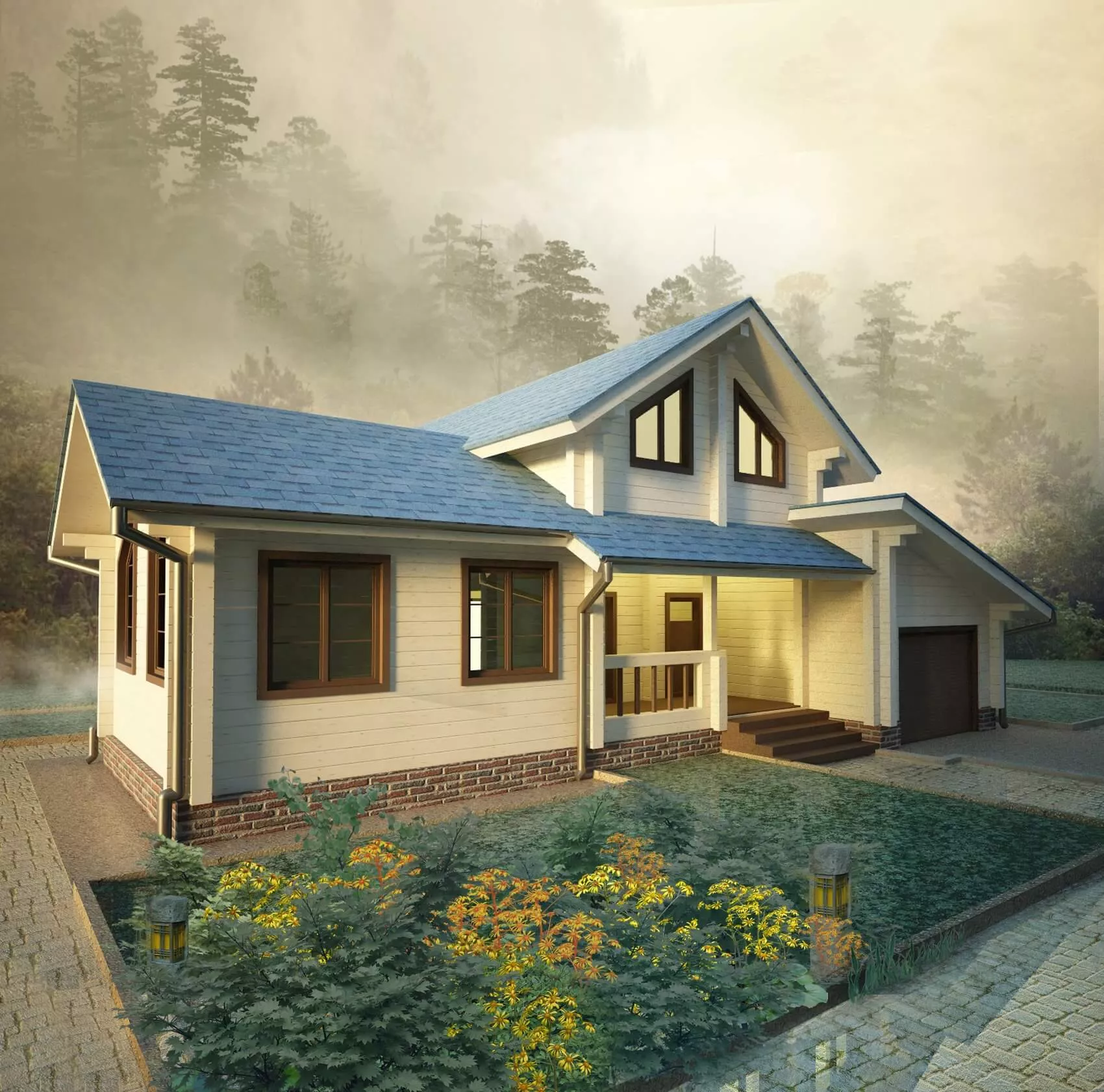 • Покрытие кровли - Гибкая битумная черепица с цветным каменным гранулятом;