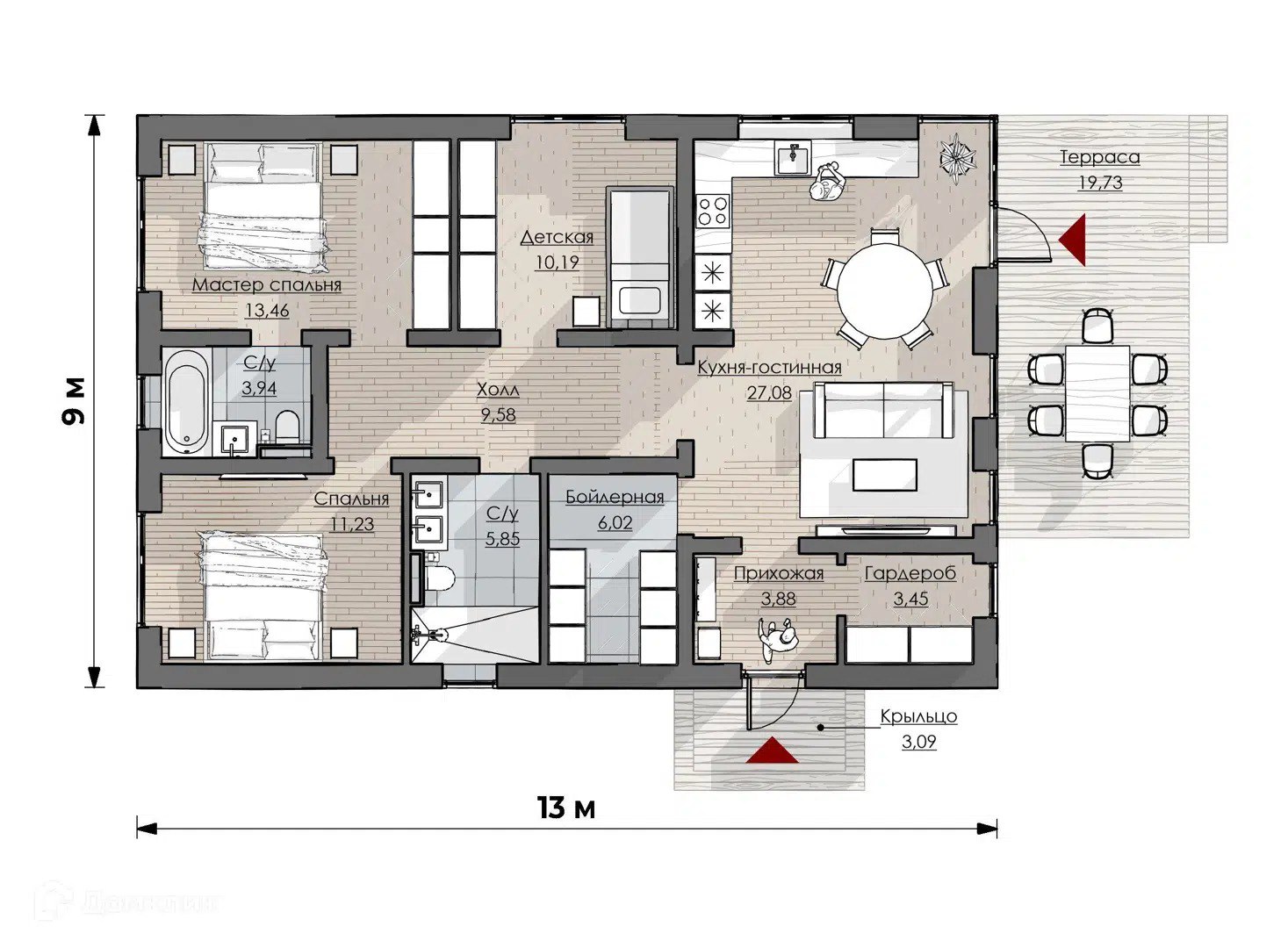 Размер дома 9х13