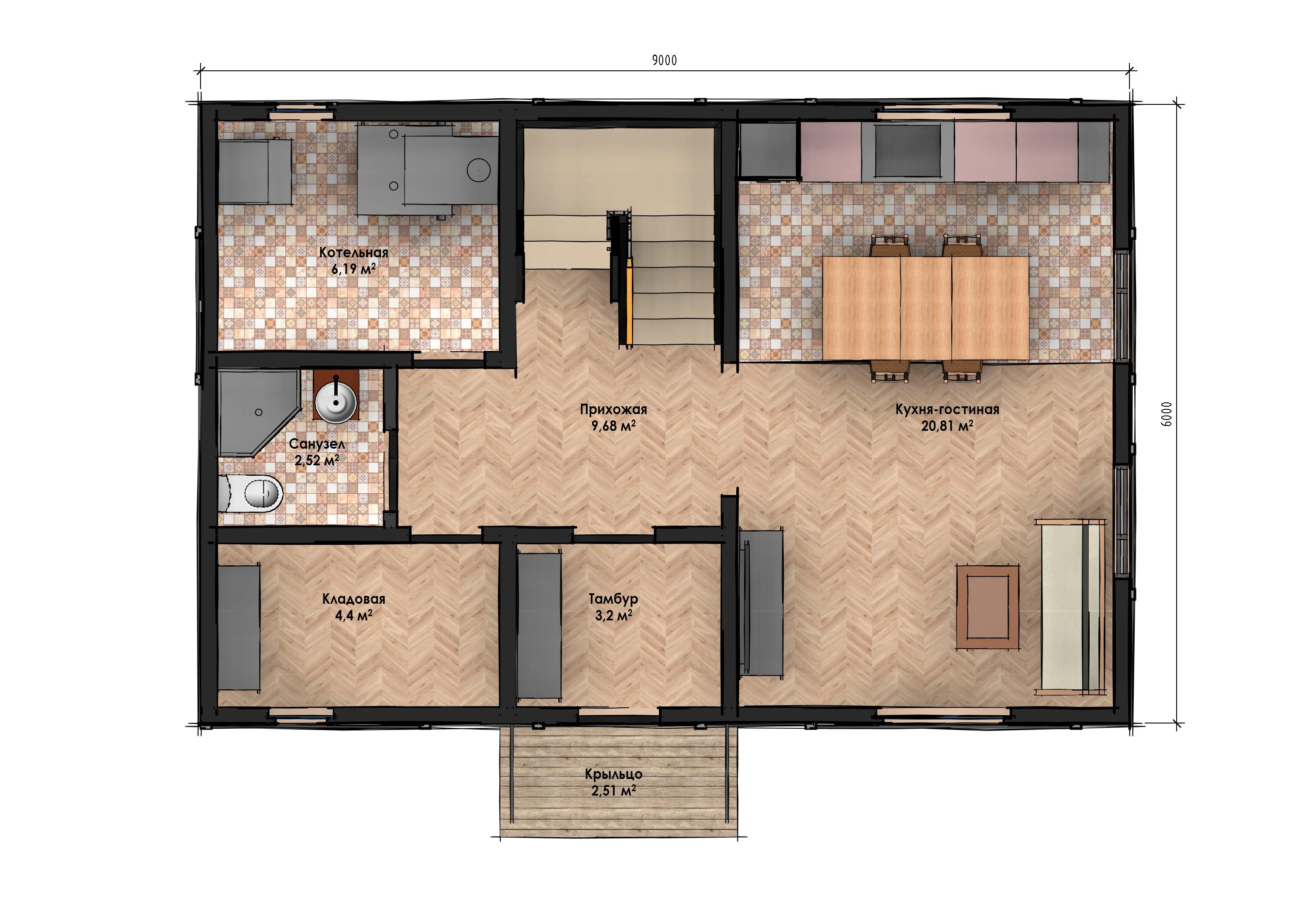 • Покрытие кровли - Гибкая битумная черепица с цветным каменным гранулятом;