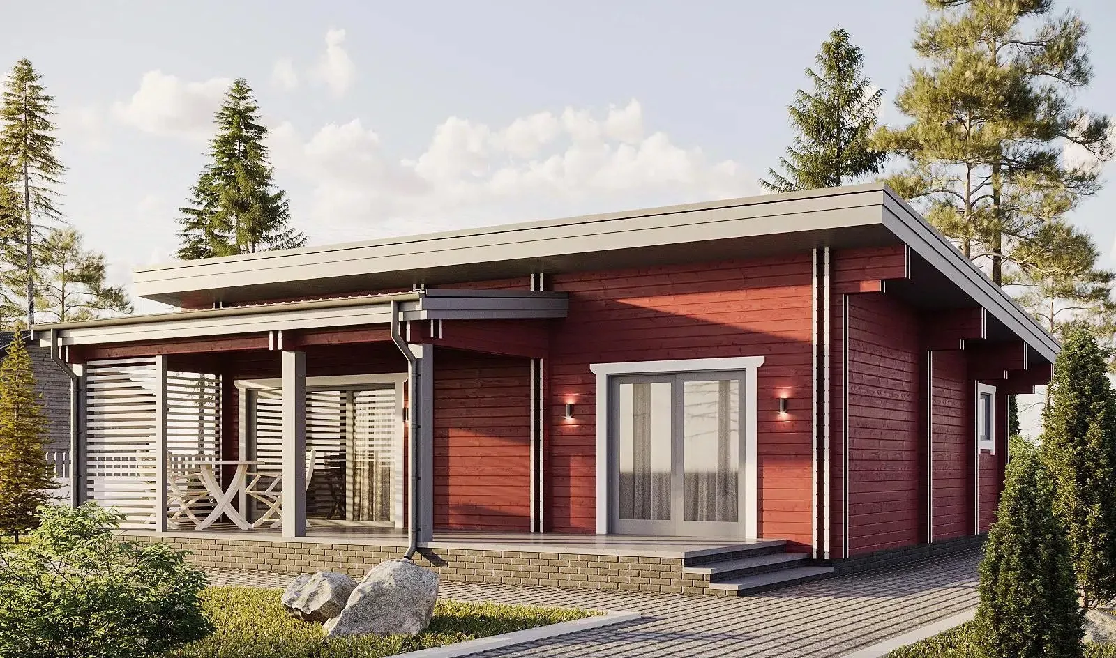 • Покрытие кровли - Гибкая битумная черепица с цветным каменным гранулятом;