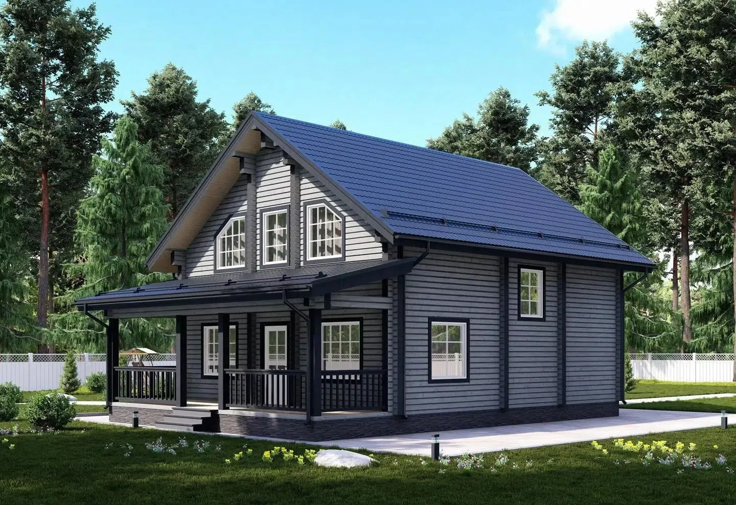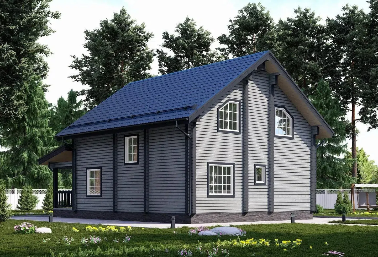 • Покрытие кровли - Гибкая битумная черепица с цветным каменным гранулятом;