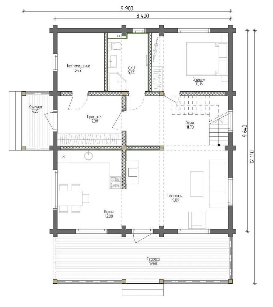 Размер дома 12,2х9,9