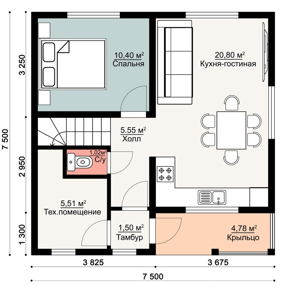 Размер дома 7,5х7,5
