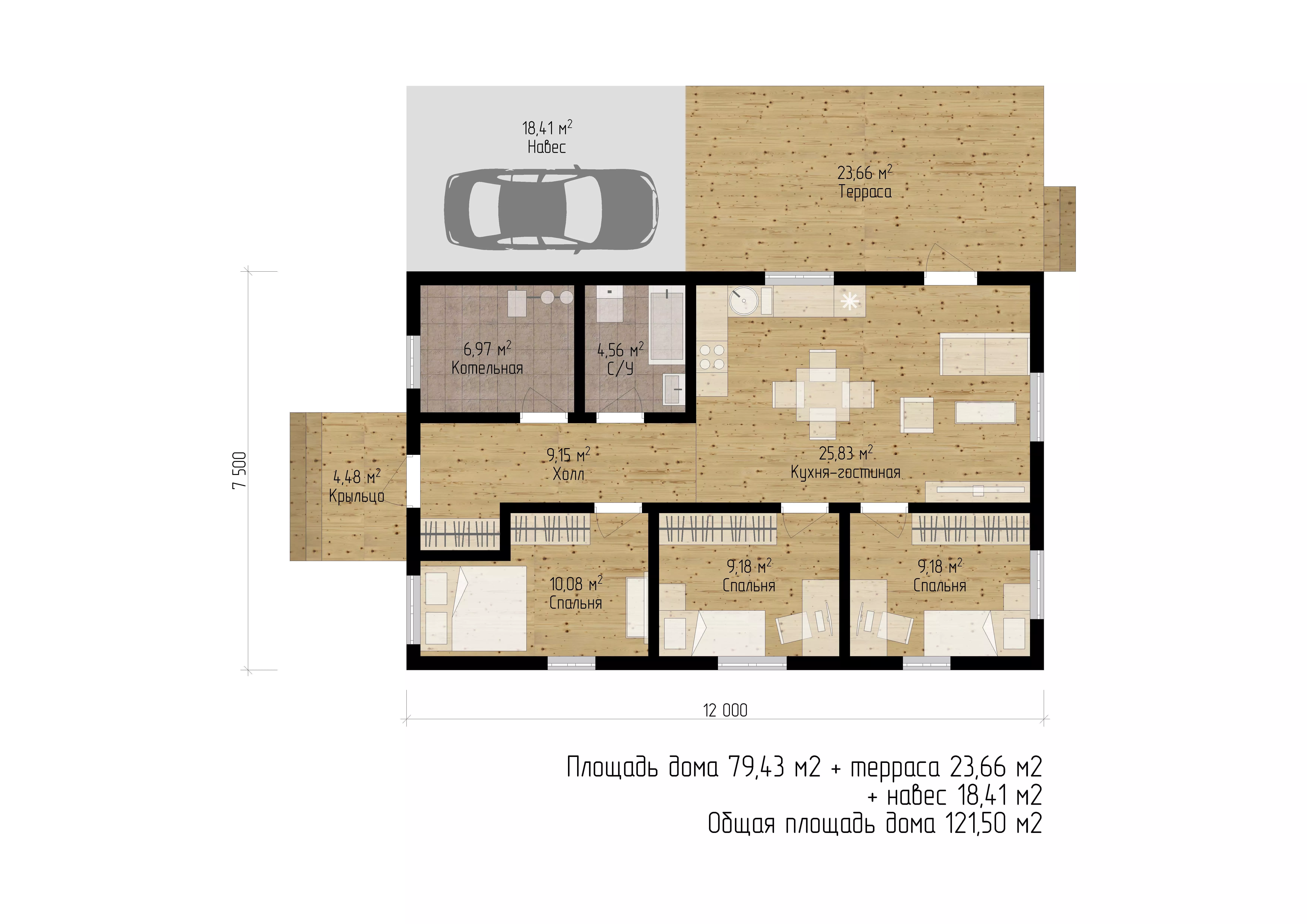 • Покрытие кровли - Гибкая битумная черепица с цветным каменным гранулятом;