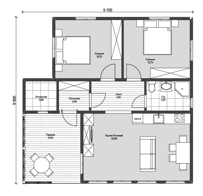 • В серийных проектах мы используем буронабивные сваи диаметром 400мм и длиной 3 метра, если иное не требуется по результатам геологии.
