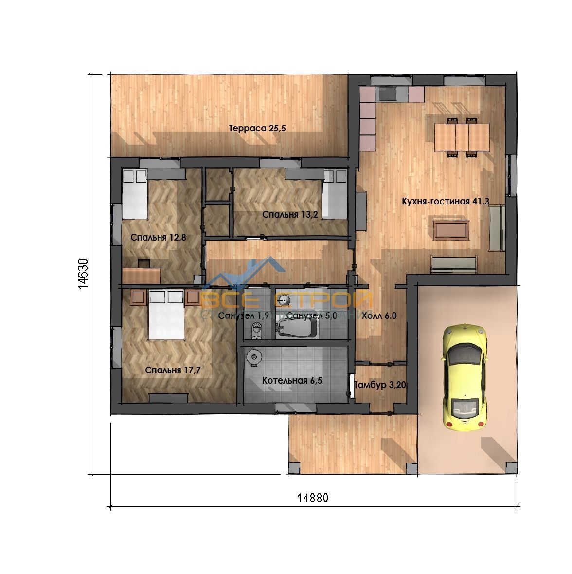 Размер дома 13,9х14,5