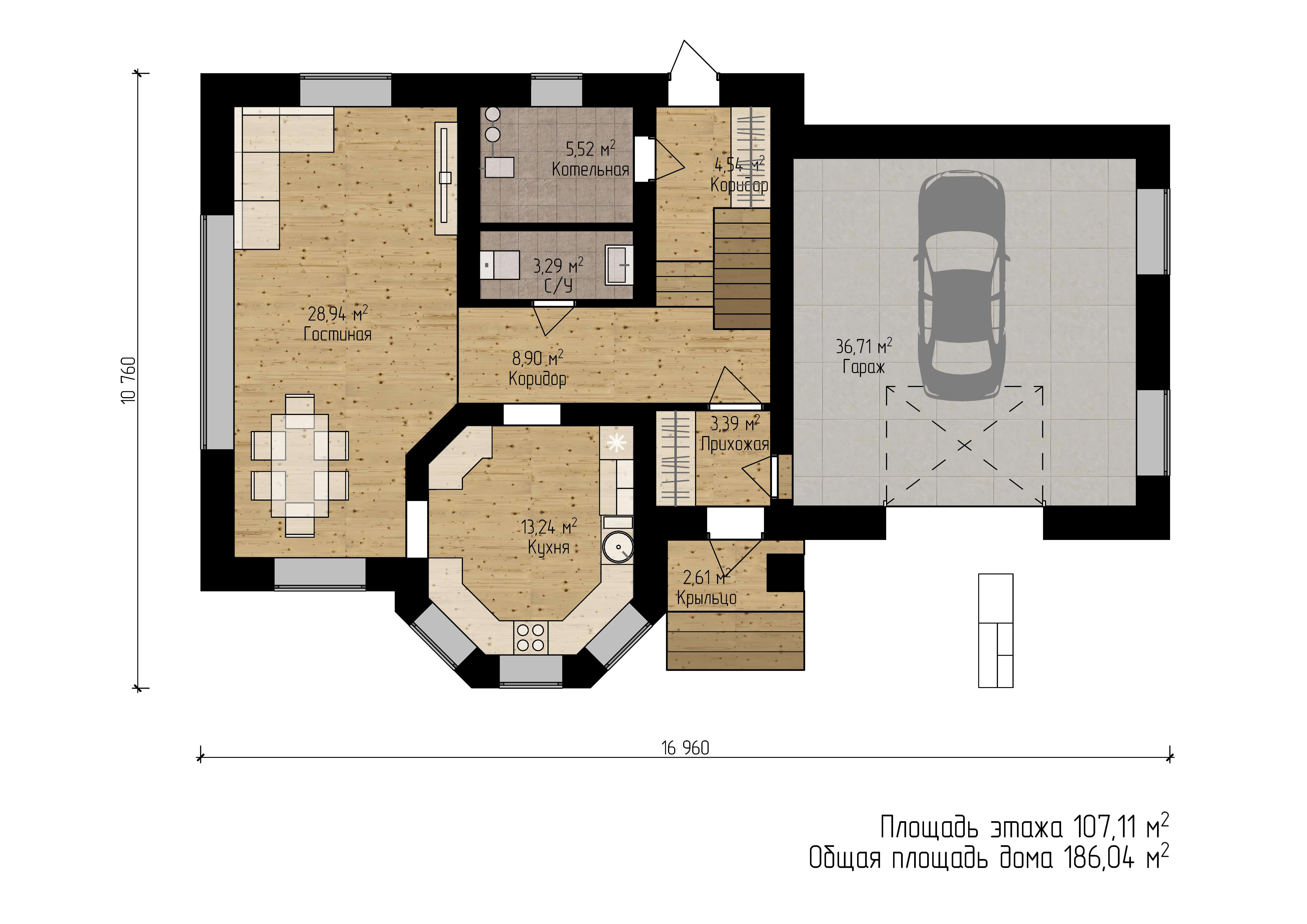 Размер дома 16,9х10,7