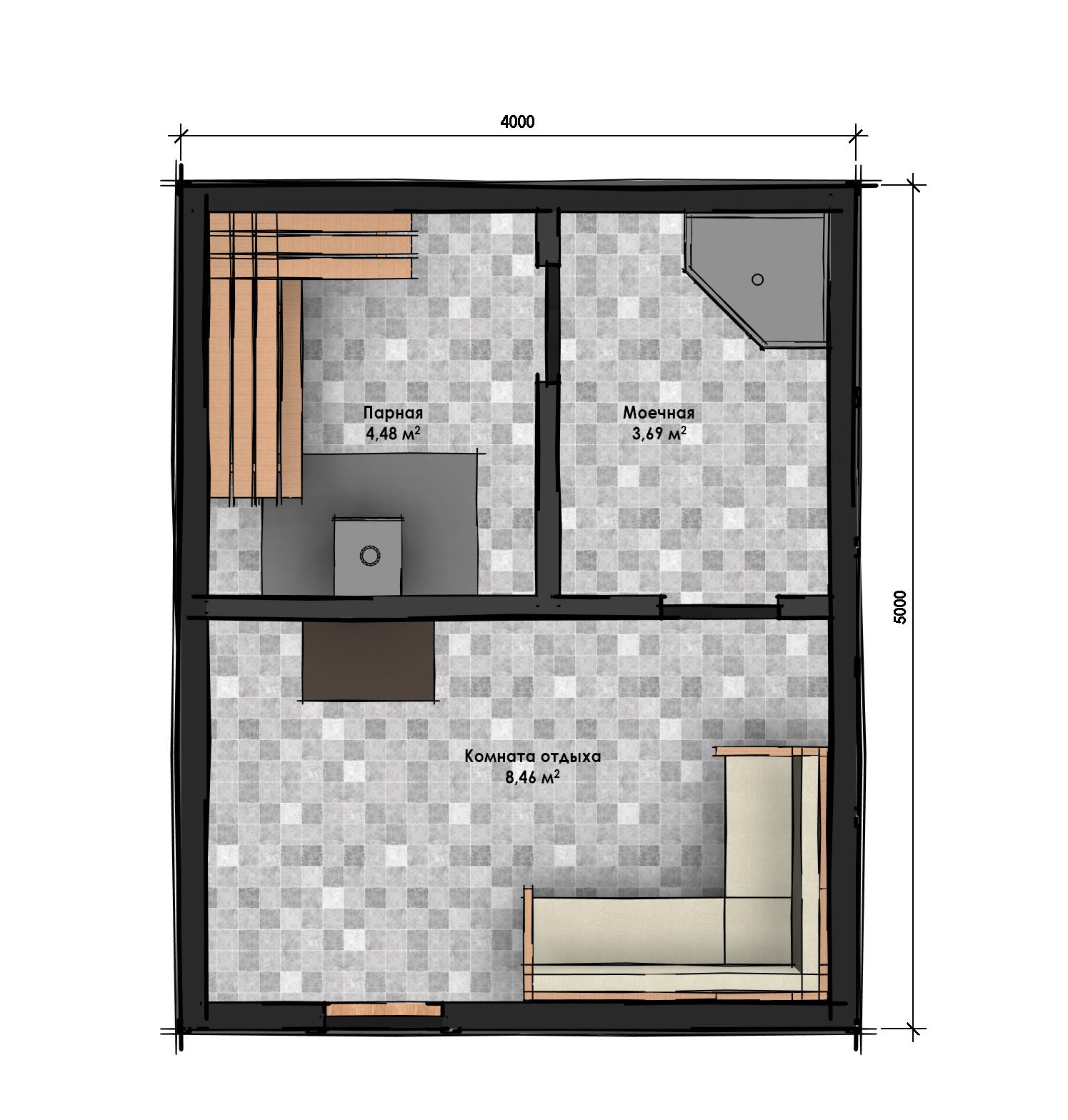 • Покрытие кровли - Гибкая битумная черепица с цветным каменным гранулятом;