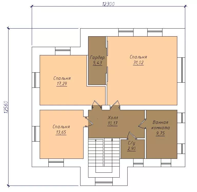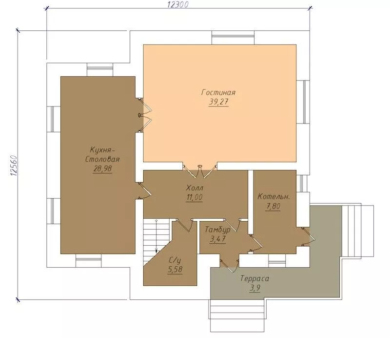 Размер дома 12,3x12,5