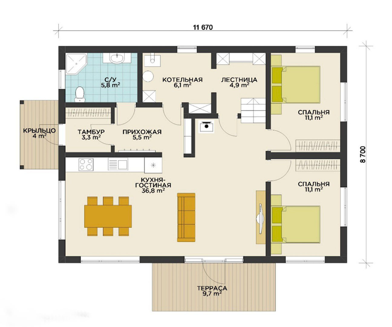 Размер дома 8,7х11,6