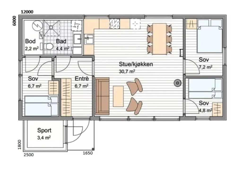 Размер дома 6х12
