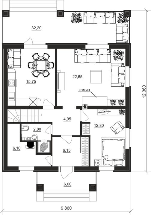Размер дома 9,8х12,3
