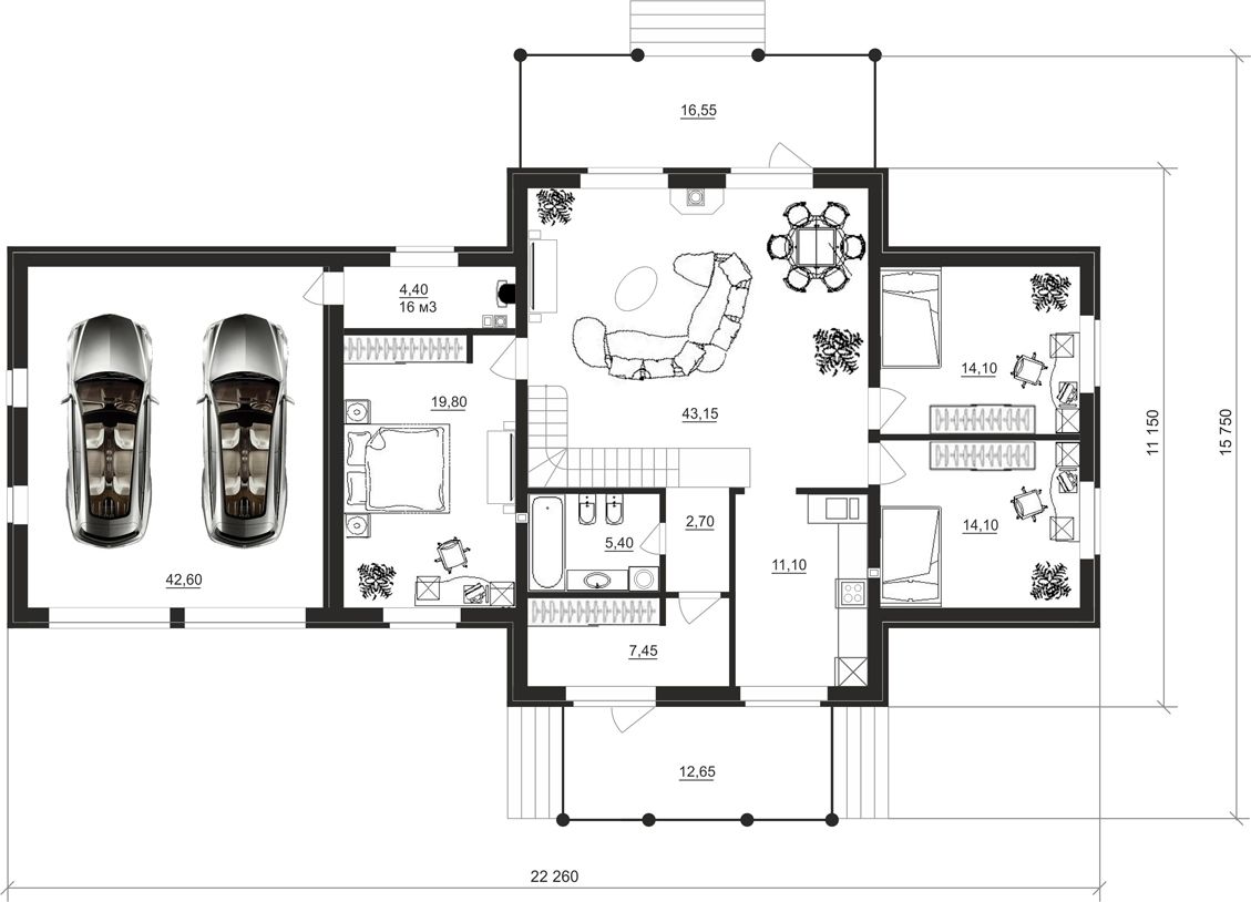 Размер дома 22,2х15,7