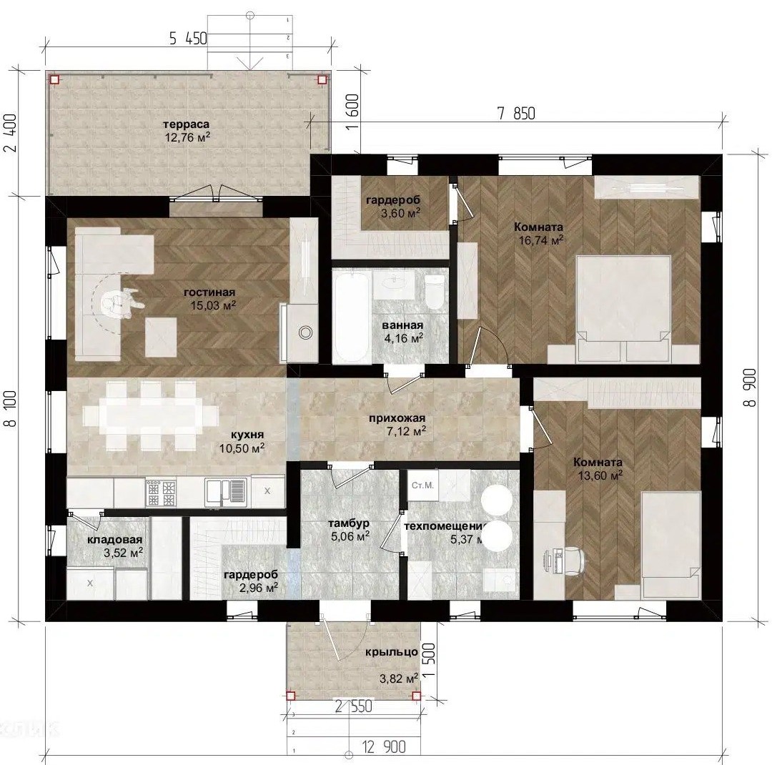 Площадь: 127 м2