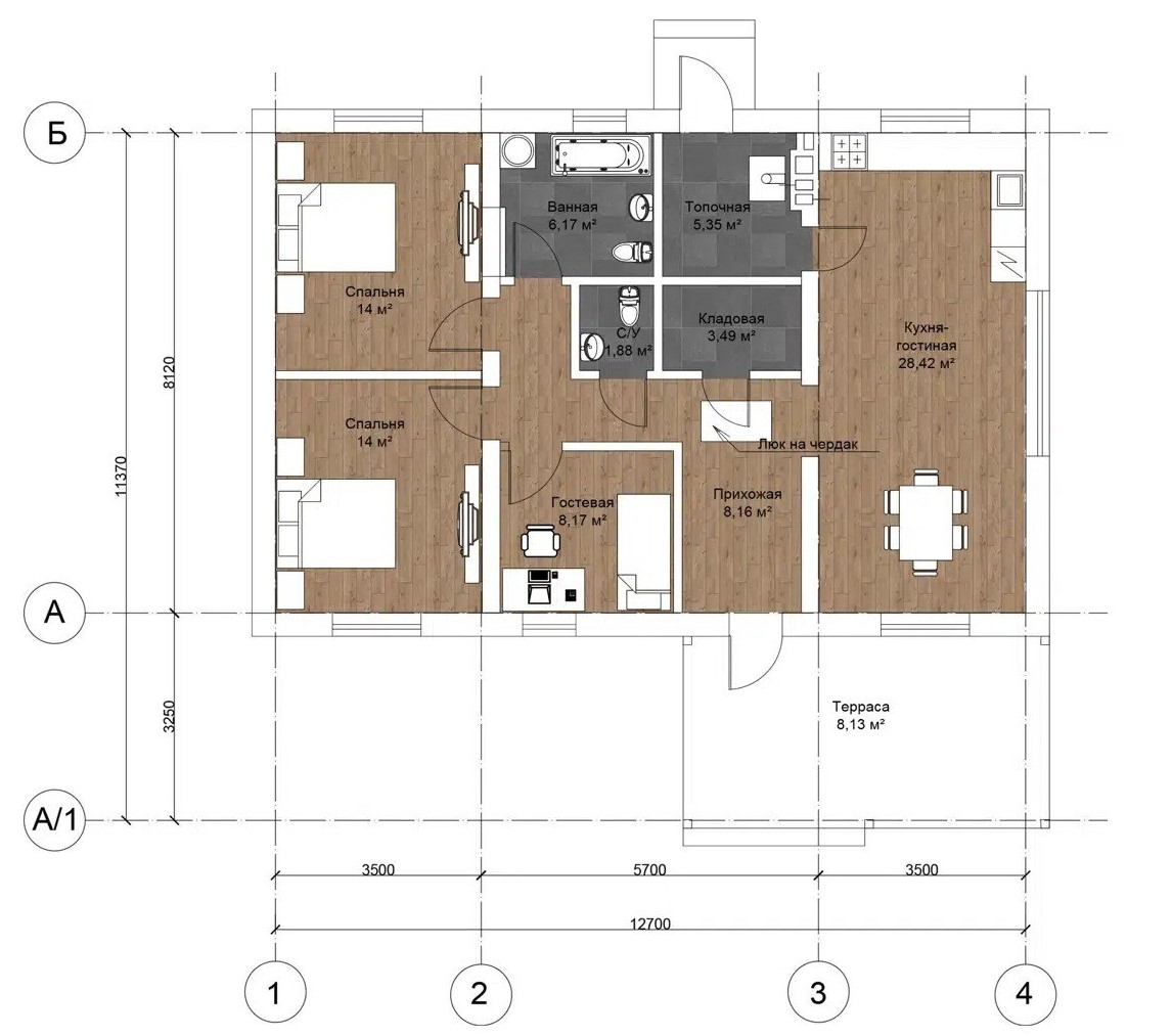 • В серийных проектах мы используем буронабивные сваи диаметром 400мм и длиной 3 метра, если иное не требуется по результатам геологии.