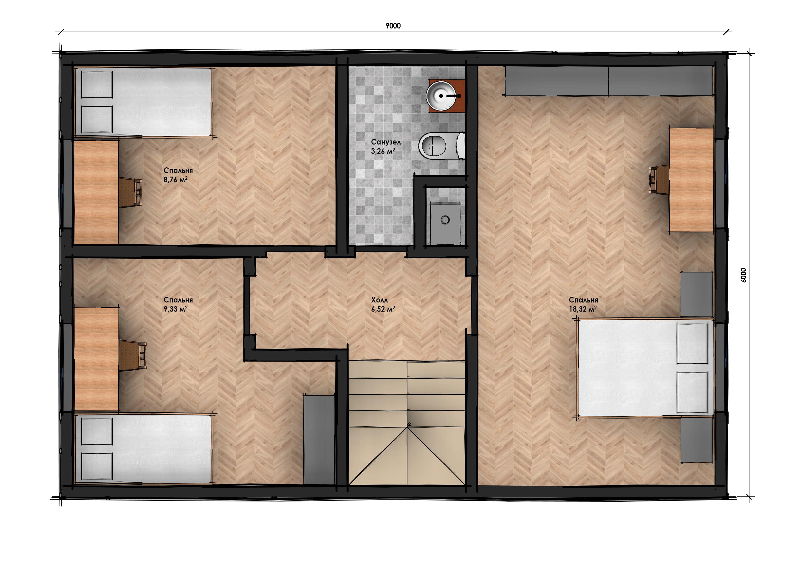 • Покрытие кровли - Гибкая битумная черепица с цветным каменным гранулятом;