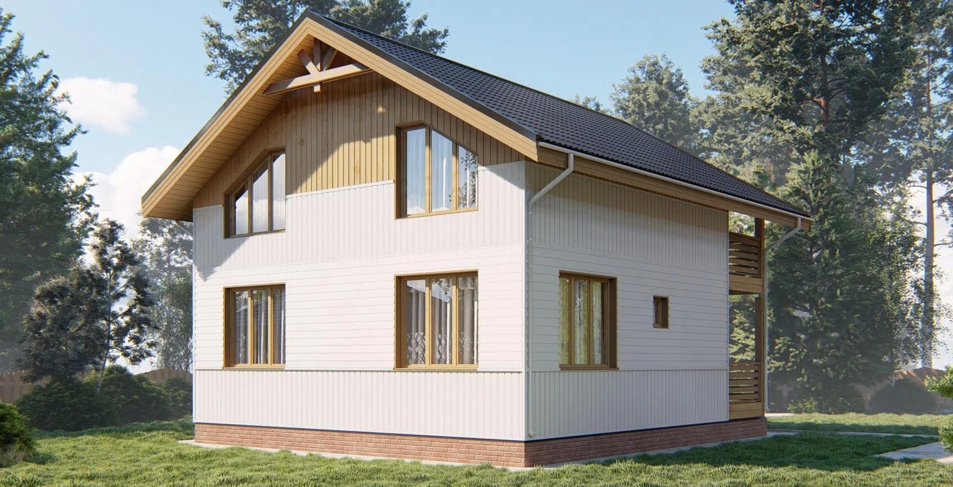 • Покрытие кровли - Гибкая битумная черепица с цветным каменным гранулятом;