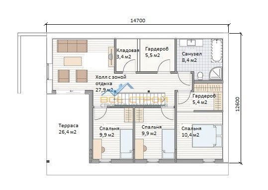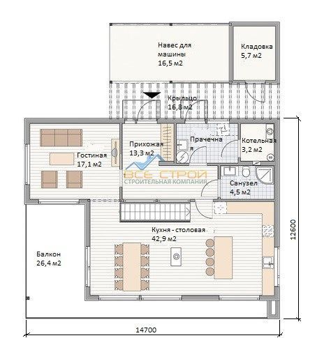 Размер дома 12,6х14,7