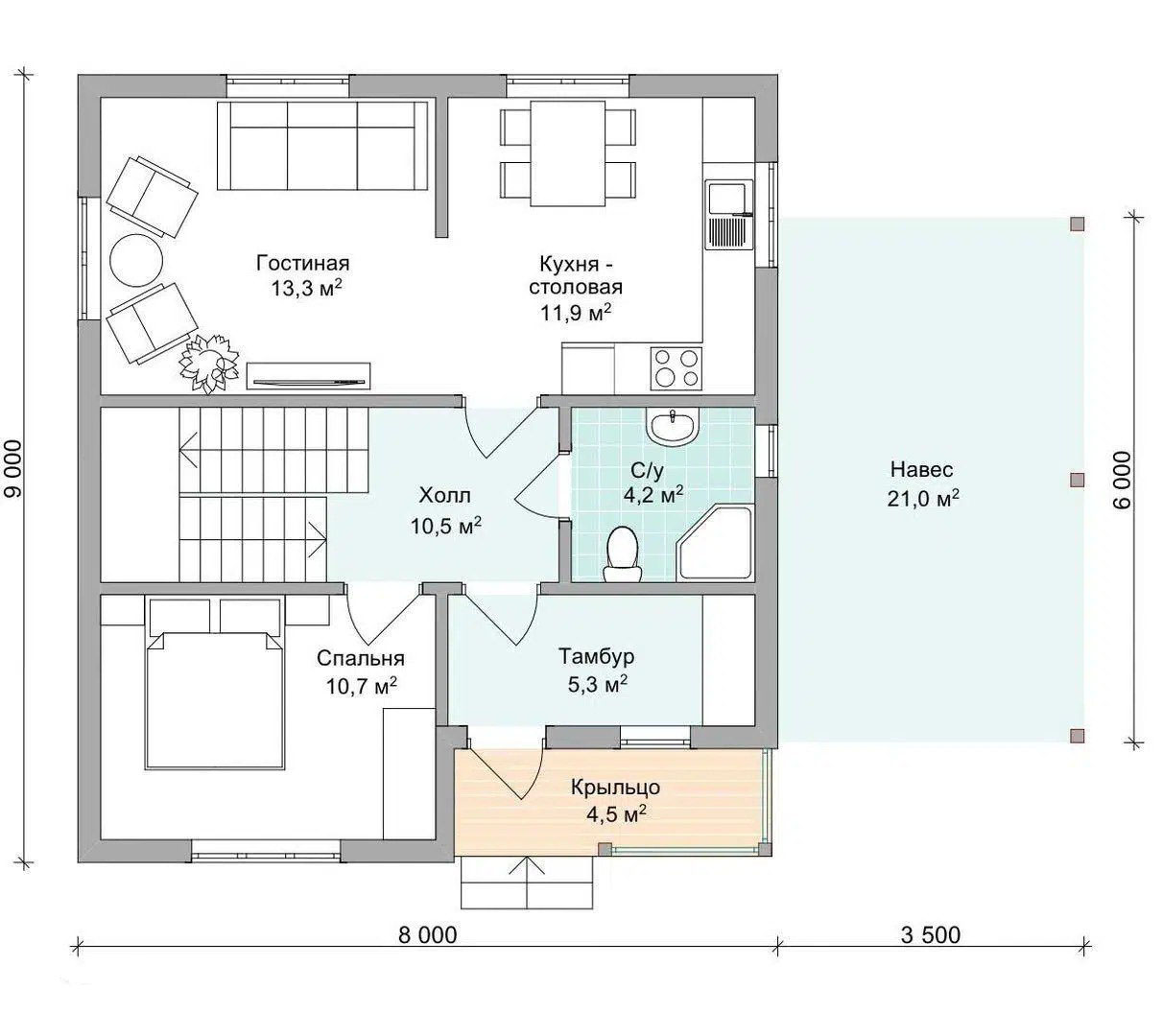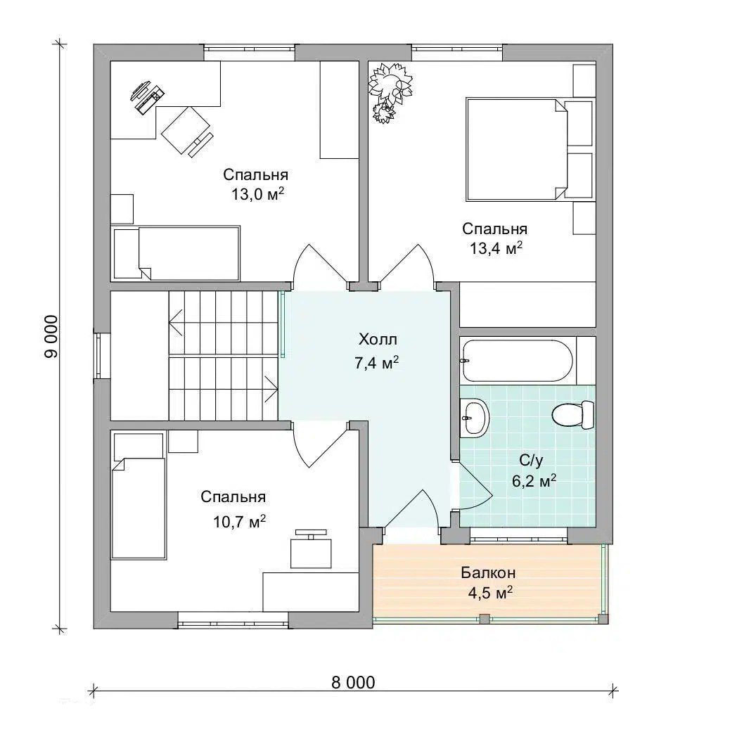 Размер дома 9х8