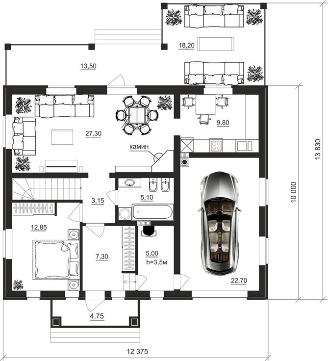 Размер дома 12,3х13,8