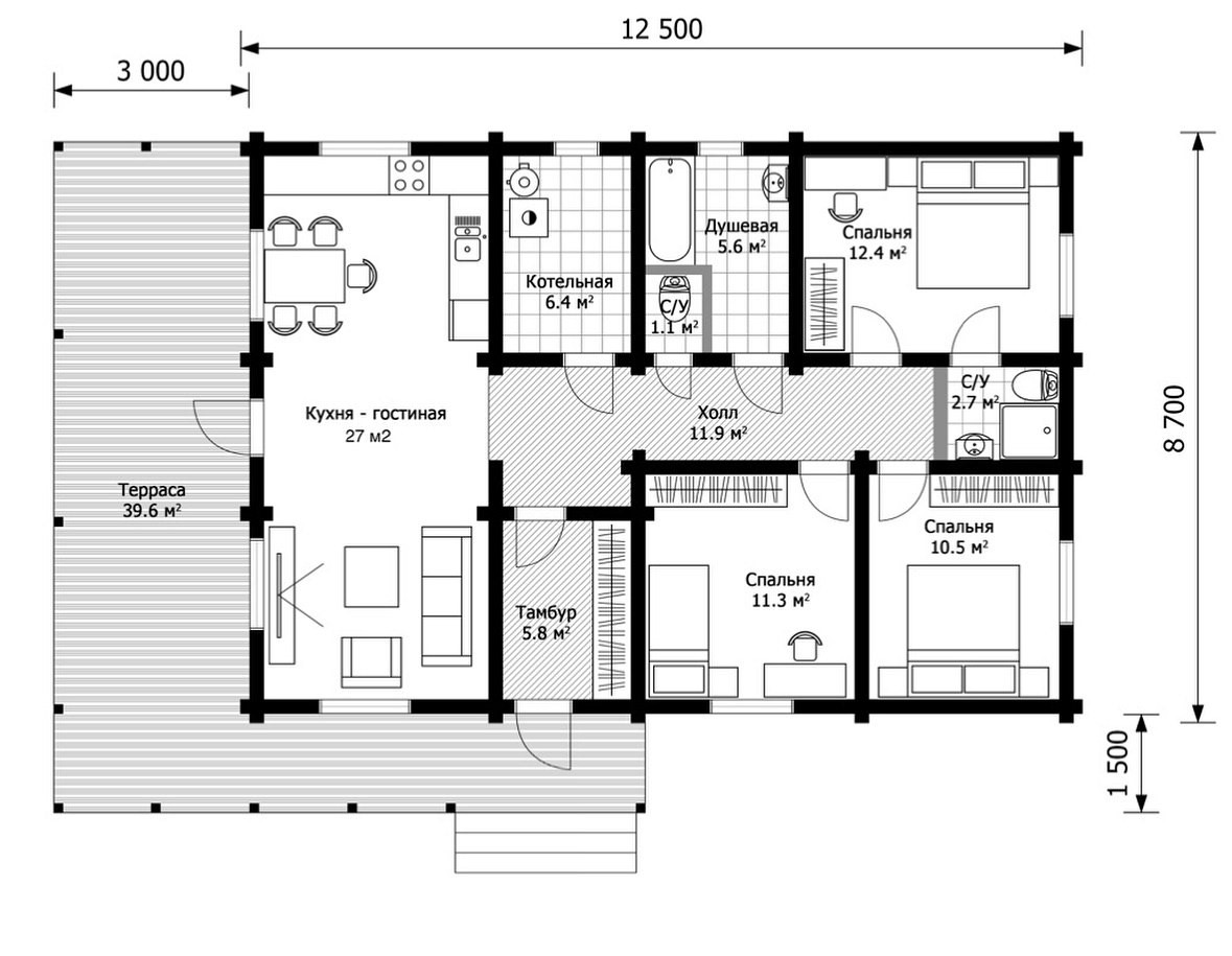 Размер дома 8,7х12,5