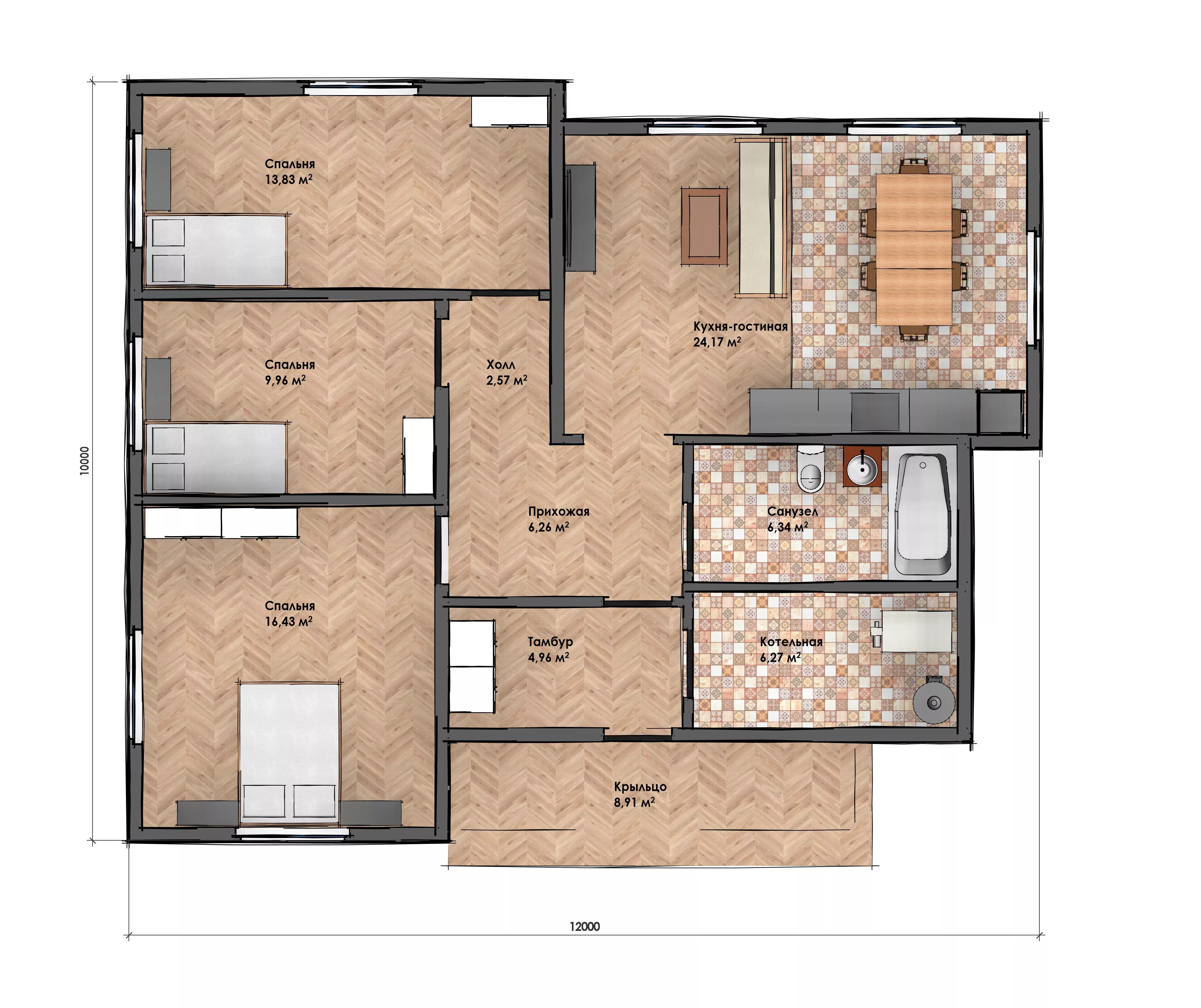 Размер дома 10х12