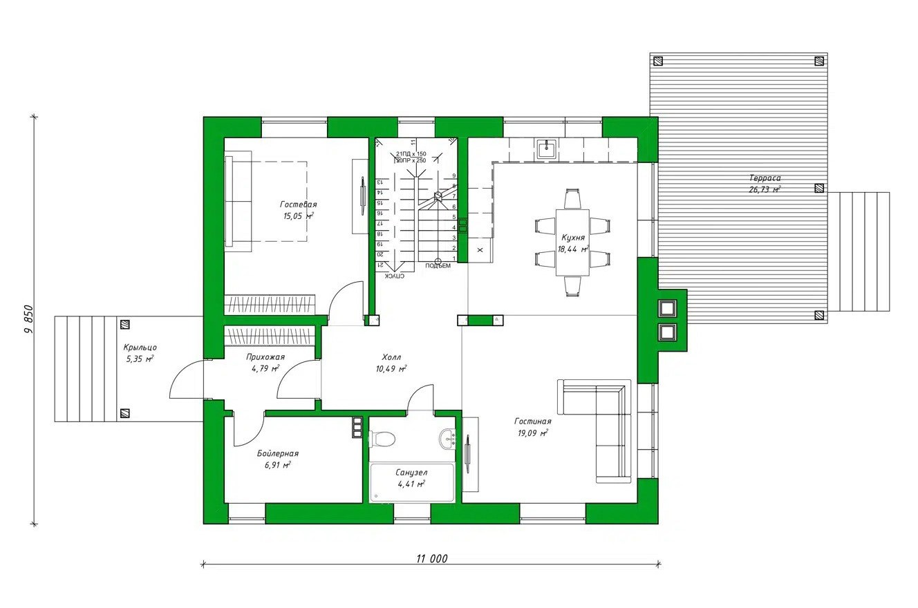 Размер дома 9,8х11