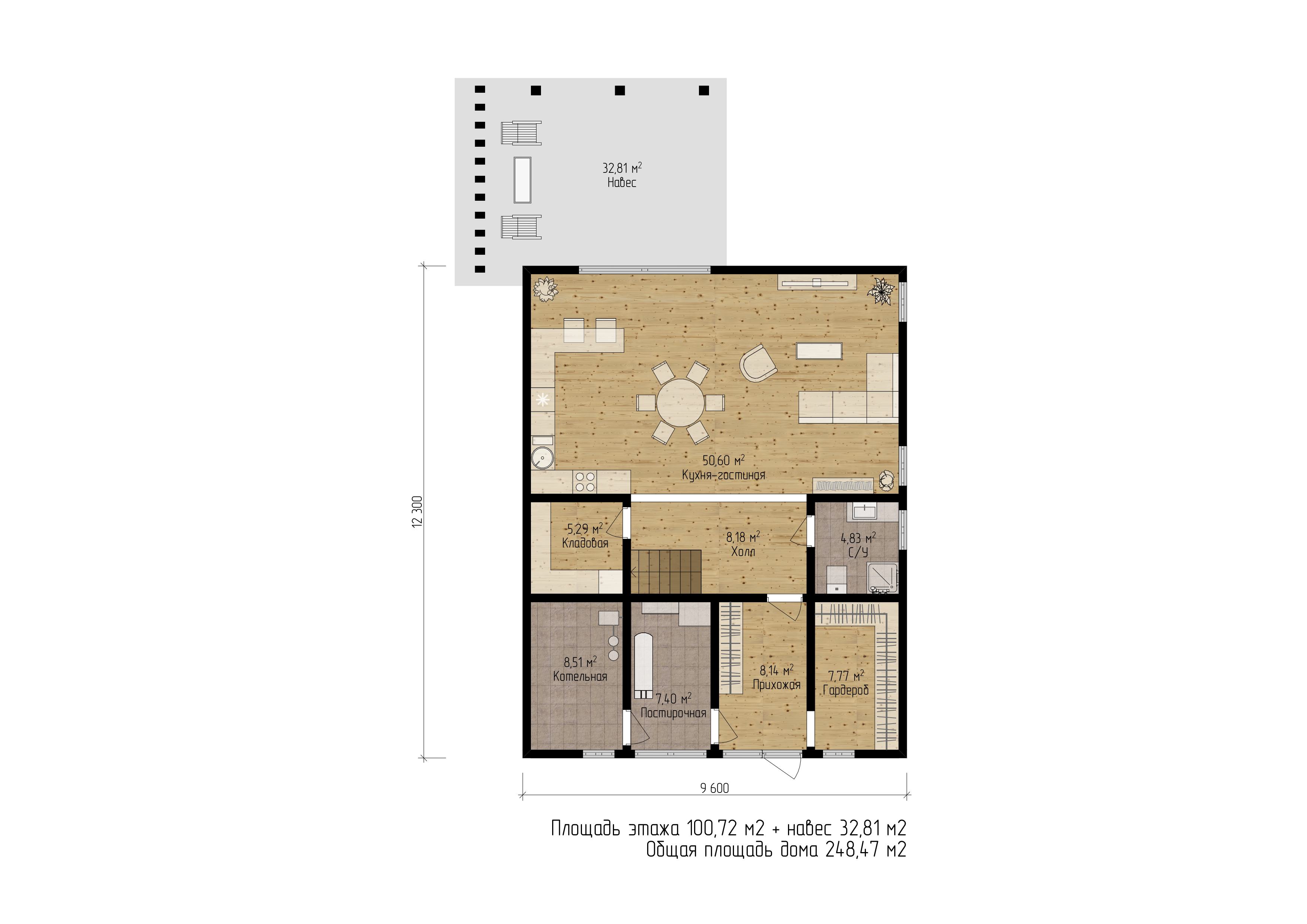 • Покрытие кровли - Гибкая битумная черепица с цветным каменным гранулятом;