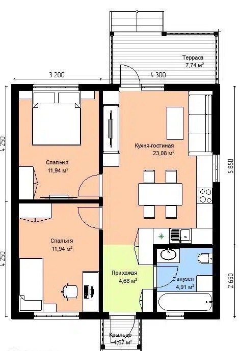 Площадь: 74 м2