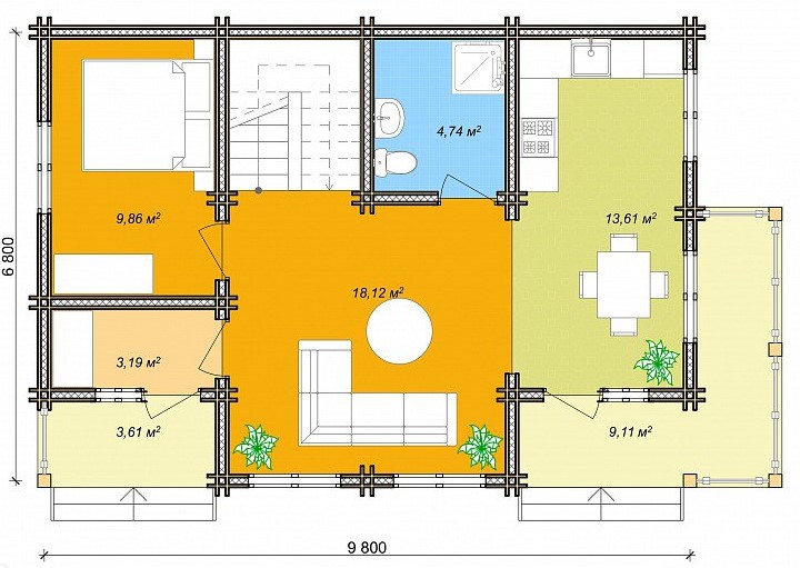• Покрытие кровли - Гибкая битумная черепица с цветным каменным гранулятом;